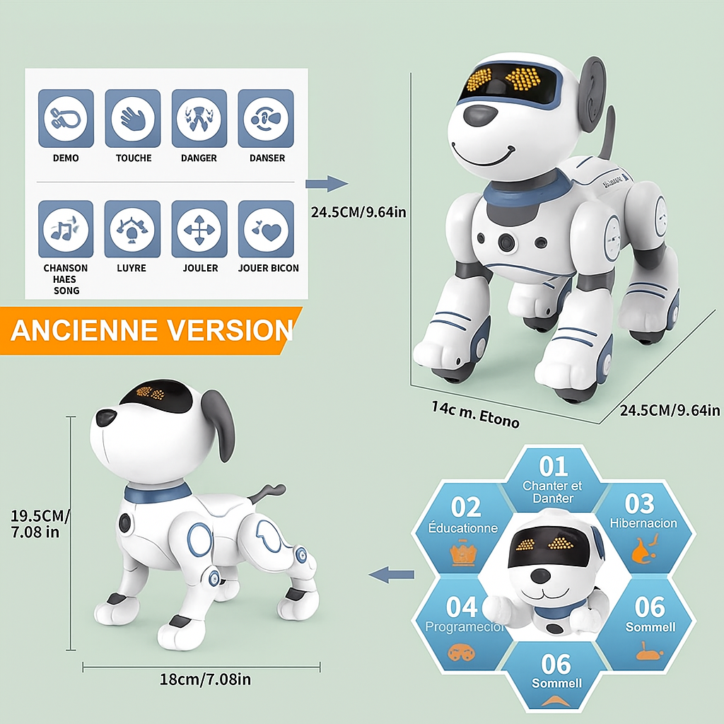 Le chien robot intelligent interactif chante, danse et réagit aux commandes pour offrir des heures de jeu amusant et éducatif.