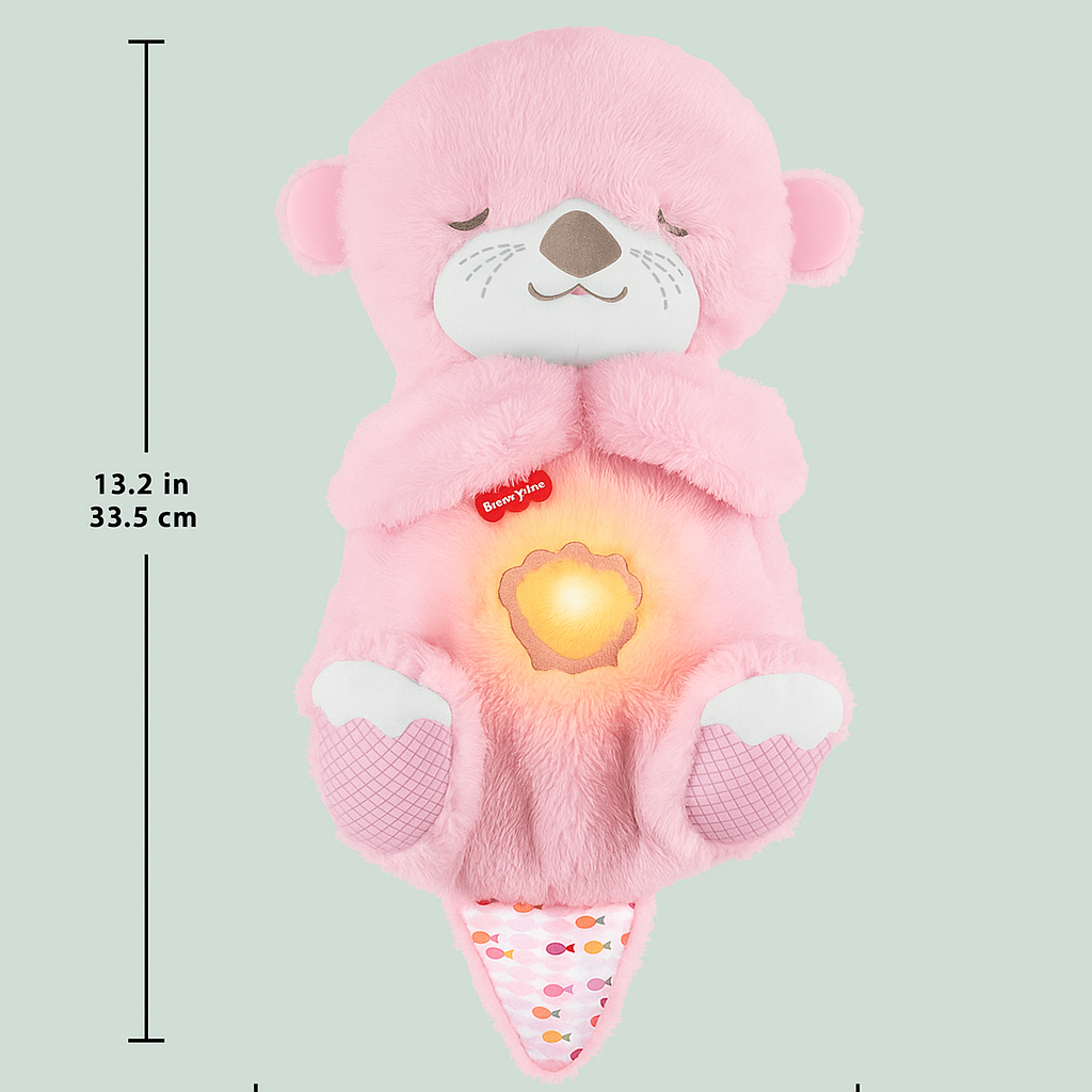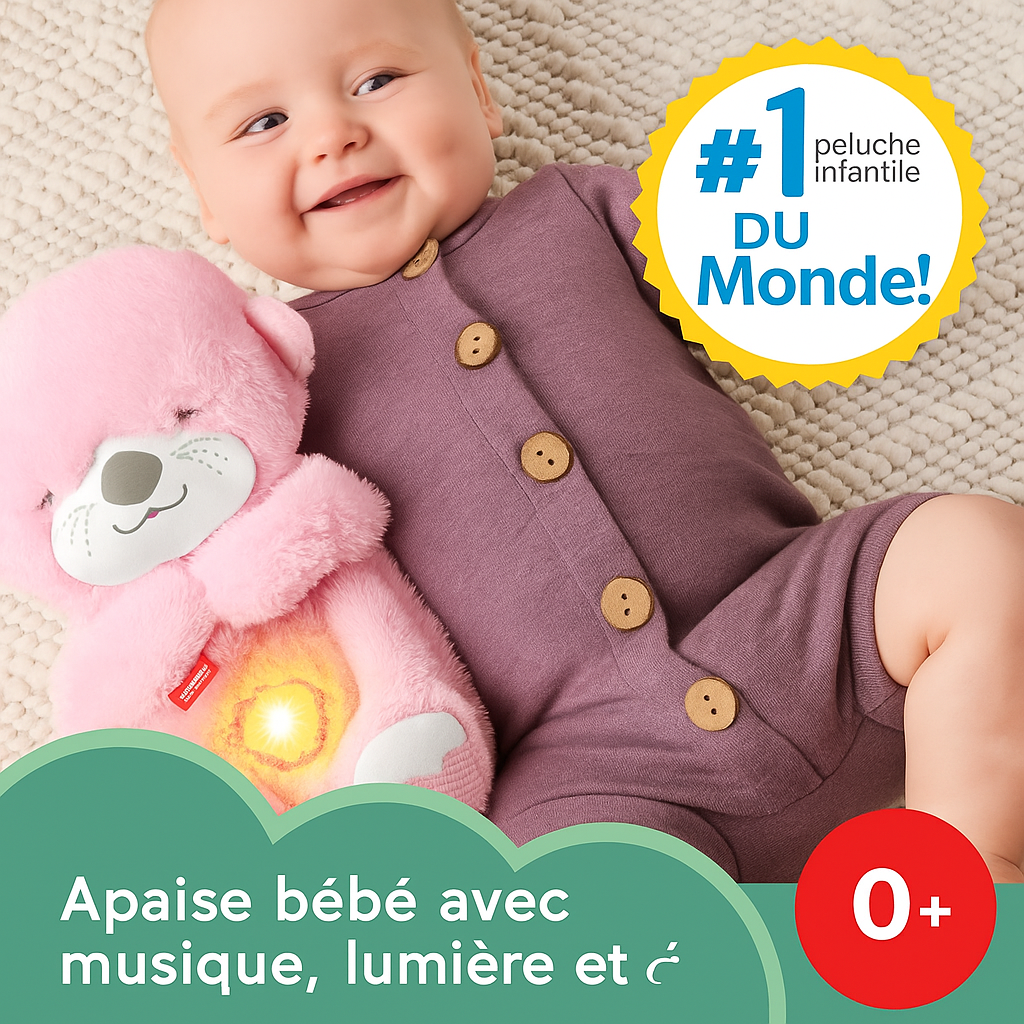 La Loutre Câlins Bonne Nuit Fisher-Price berce bébé avec sa douce lumière, sa respiration apaisante et ses mélodies réconfortantes.